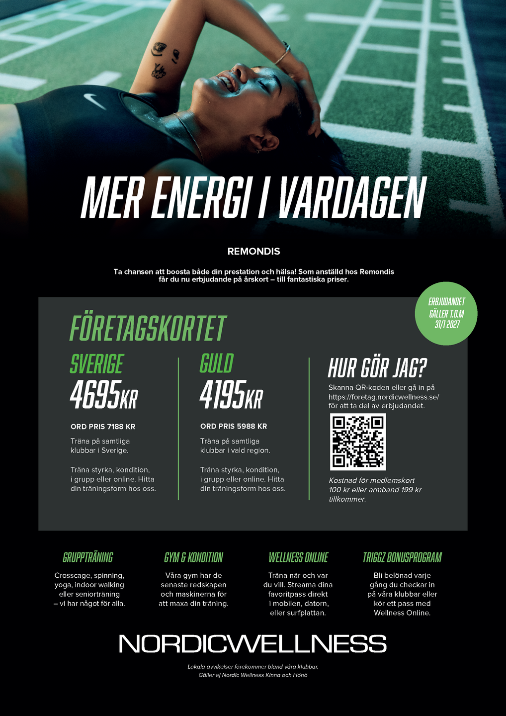 OBS! Du kan bara fylla i formuläret en gång. Rabatten gäller enbart årskort hos Nordic Wellness.