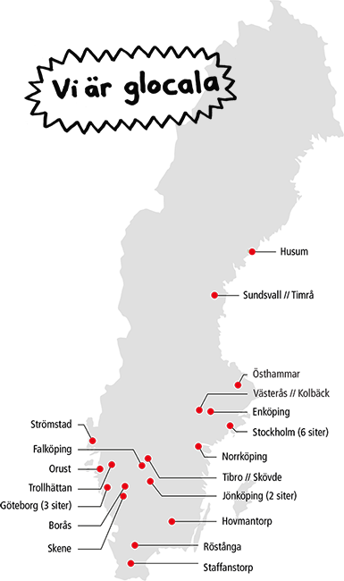 Vi håller till i södra Sverige, närmare bestämt i Staffanstorp och Röstånga. Här jobbar ett 30-tal medarbetare och vi producerar ca 20 000 ton återvunnen plast per år. Om vi behöver har vi hela den globala koncernen i ryggen, men det mesta av jobbet sköter vi i Skåne.